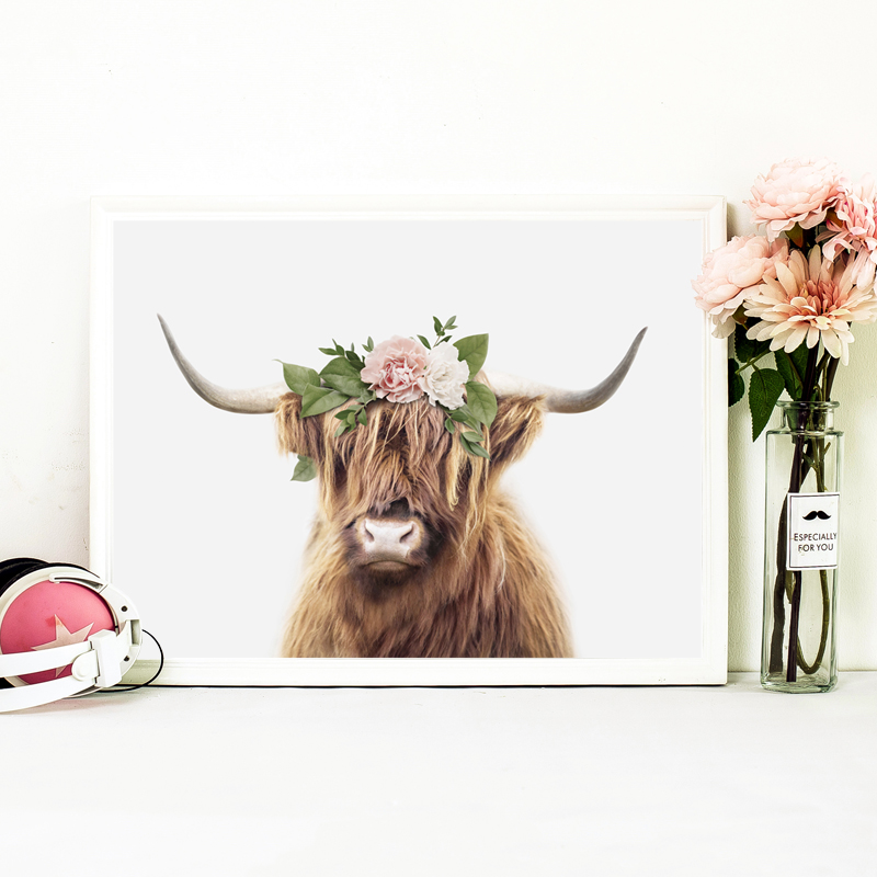 Highland Cows Canvas Painting Girl Art Nordic Poster
