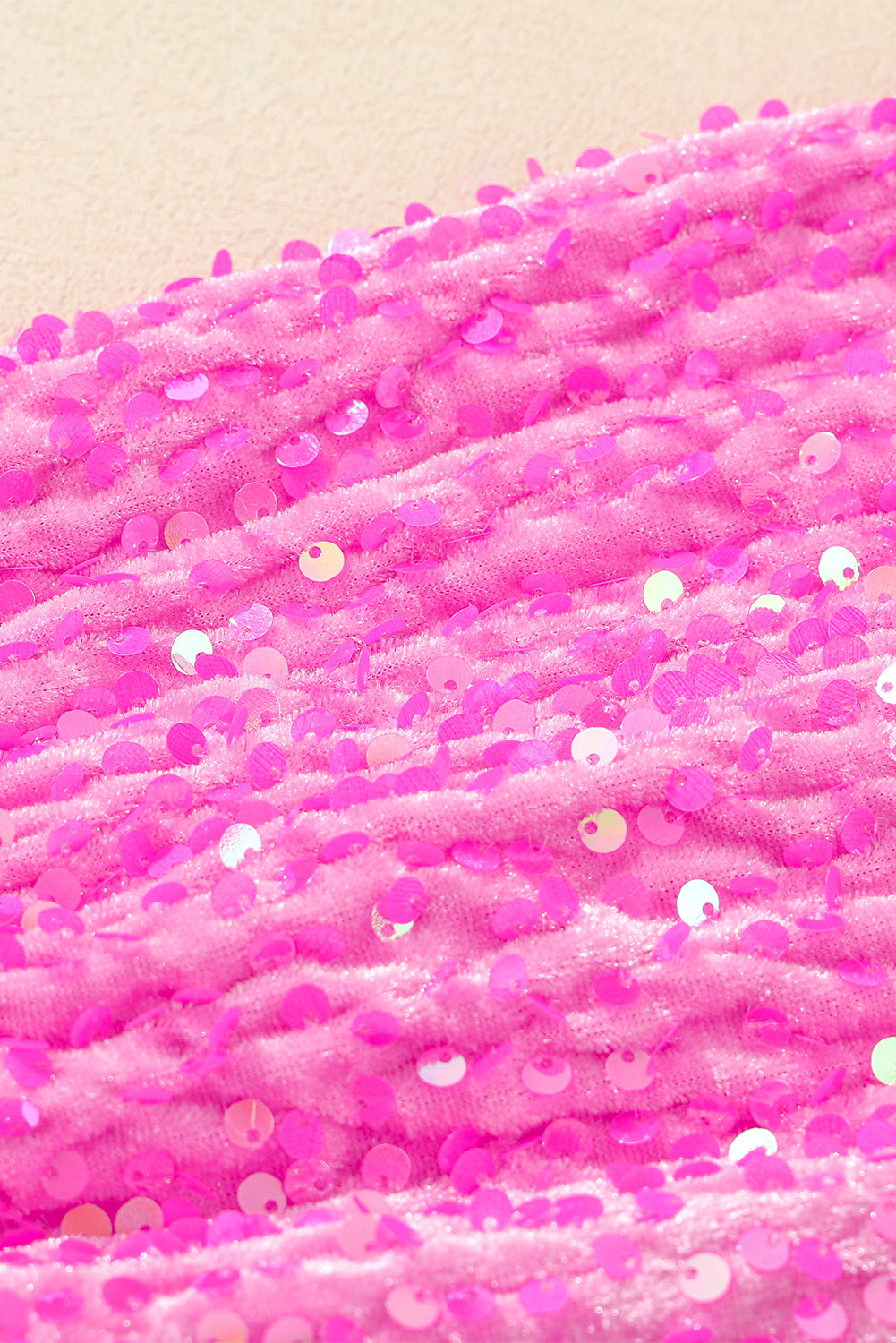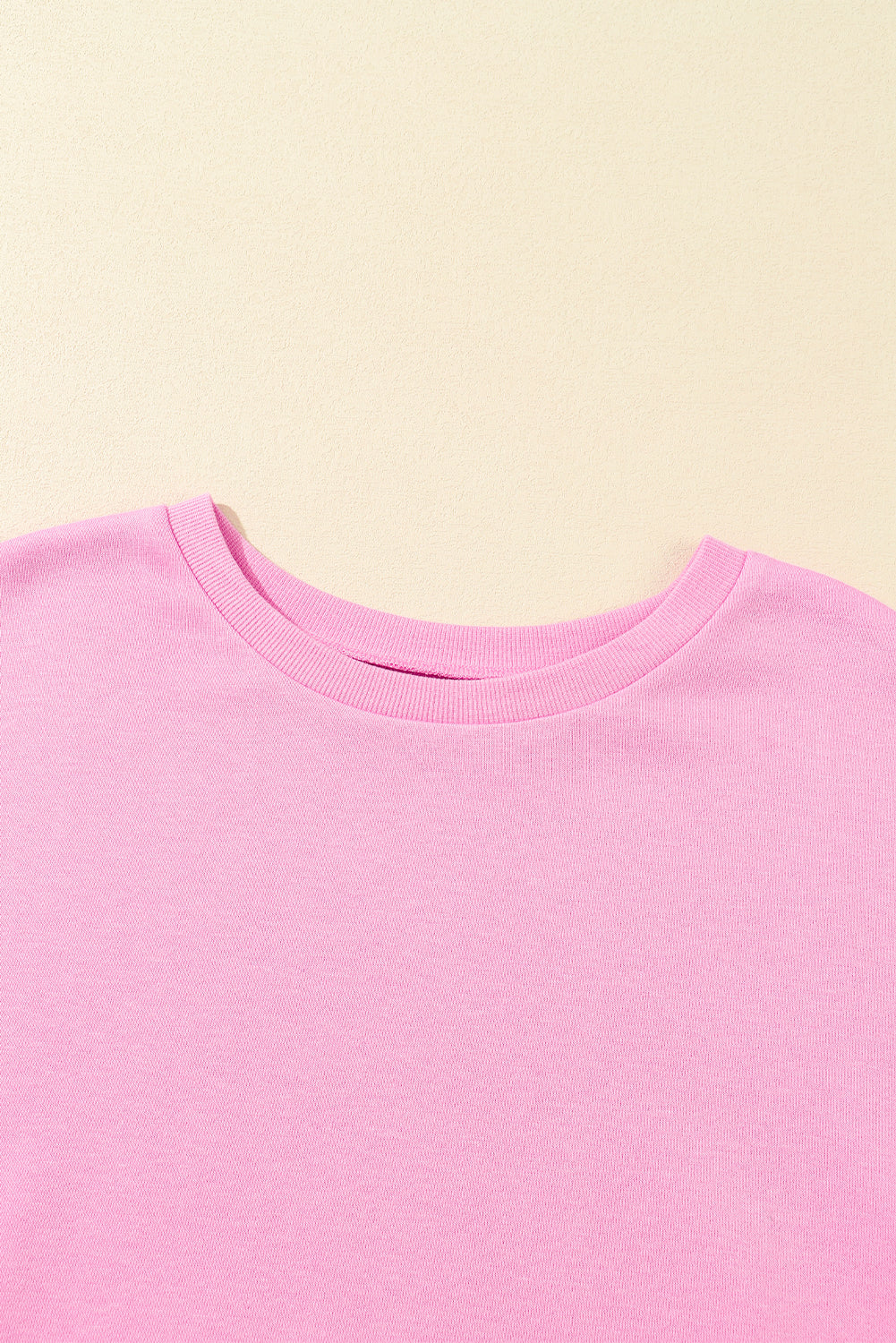 Pink Plus Size Sequin Sleeve Drop Shoulder Sweatshirt