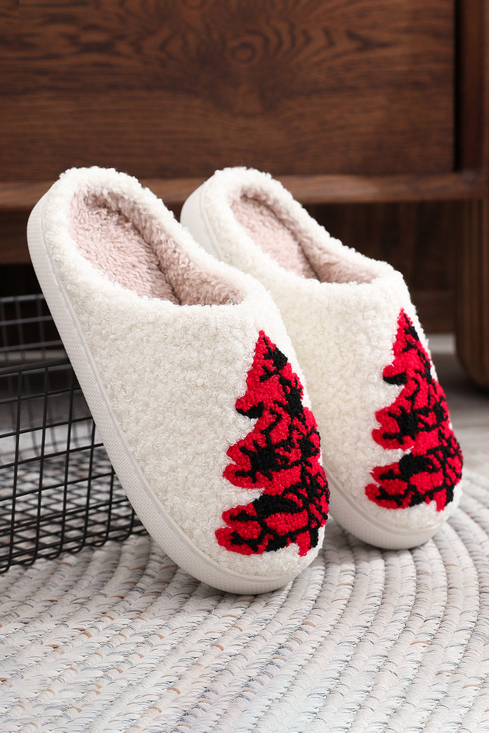 White Valentines Day Hearts Print Plush House Slippers
